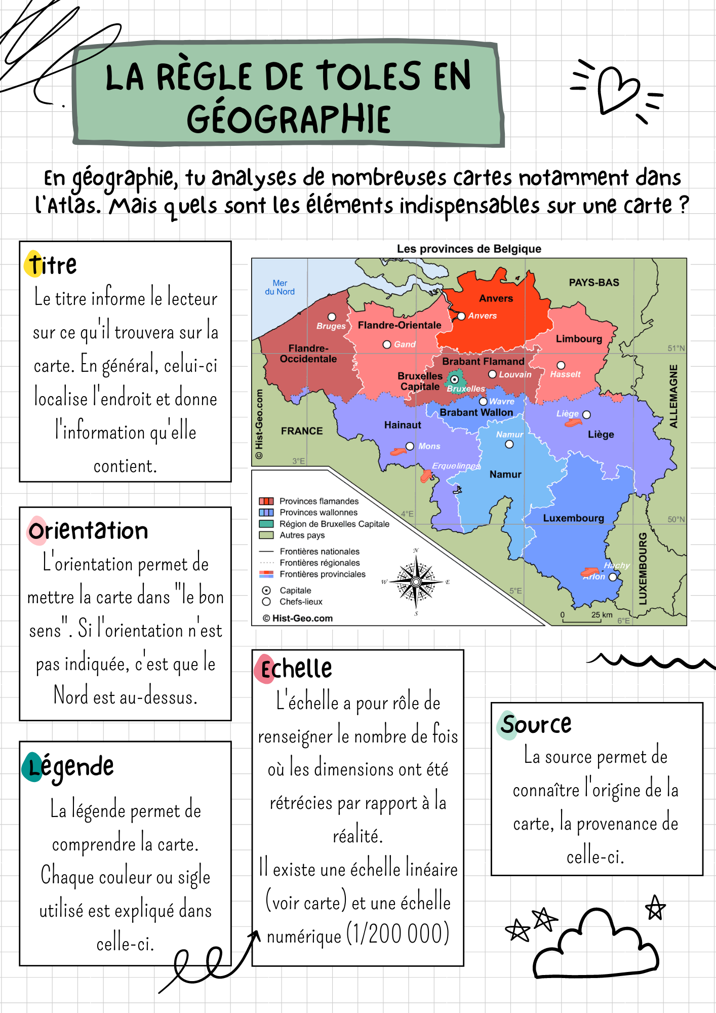 Explication de la règle de T.O.L.E.S pour les cartes de géographie sous la forme d'une fiche outil (Merci à  Romina Capizzi pour l'idée).